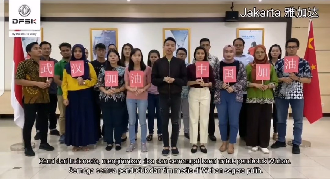 東風小康汽車印尼基地全體員工在遠方為中國武漢祈福,祝愿武漢人民一切安好,體現了大愛無國界,中印心連心的精神。