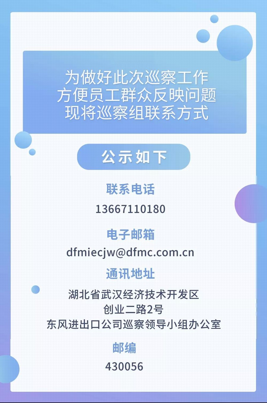 根據東風進出口公司黨委巡察工作計劃安排,將于今年7月對上海東風汽車進出口有限公司進行巡察。屆時,將實現東風進出口公司黨委對直屬黨組織巡察全覆蓋。